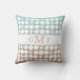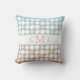 Frisse witte silhouetten van zeeen iconen - een schelpenschelp, zeesterren, tropische vissen en zanddollar - staan op een rij over het ontwerp tegen een gradiënt achtergrondkleur die van het zandstrand aan de onderkant naar aquablauw aan de bovenkant stroomt. De middelste witte balk, geaccentueerd met twee dunne lijnen van aqua, heeft een eenvoudig te gebruiken sjabloon waar u het kussen kunt personaliseren met uw eigen tekst - jouw naam, of citaat of gewoon gebruiken zoals getoond, vervangen door uw eigen monogram. Een frisse home decor toevoeging voor elke strandliefhebber.