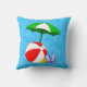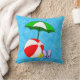 Vun strand of zwembad, de kunst van een rood strandbal, groene zonneparaplu, vakantiesandalen en zonnebrandolie tegen een achtergrond van lichte blauwe en krullende golven. Pas het aan om jouw naam of bericht toe te voegen, achtergrondkleuren en meer te wijzigen.