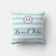 Beach Vibes Monogram Gestreept Licht Blauw Wit Kussen