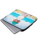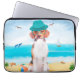 Een beagle hond die op het strand zit is een perfect cadeauidee voor iemand die van dit hondenras houdt.