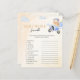 Houd gasten vermaakt met dit leuke Bearly Wait baby shower Word Scramble spel! Met een lief waterverf-ontwerp van een teddybeer die door de wolken vliegt, nodigt deze afdrukbare activiteit gasten uit om populaire baby-gerelateerde woorden te ontwarren. Een leuk en eenvoudig spel dat past bij je volledige Bearly Wait-collectie - ideaal voor een genderneutraal, avontuurlijk of hemels feest.