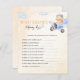 Faites de votre baby shower un jeu spécial avec ce jeu qui sait qui maman mieux ? douce et ludique avec un ours en peluche aquarelle volant un avion à travers les nuages. Faisant partie de la collection Bearly Wait Baby shower, ce jeu est parfait pour une soirée sans sexe, sur le ciel ou sur le thème de l'aventure. Les clients aimeront deviner des faits amusants sur la future maman, une excellente façon de créer des souvenirs et de partager des rires !