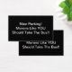 Fatigué des gens qui se garent comme des crétins ? Laisser ceci sur la voiture de la personne suivante qui prend deux places de parking, des parcs trop près de vous ou des parcs dans une zone sans parking.