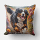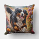 Deze Berner Mountain Dog ziet er zo vrolijk uit als hij door bloemetjes loopt.