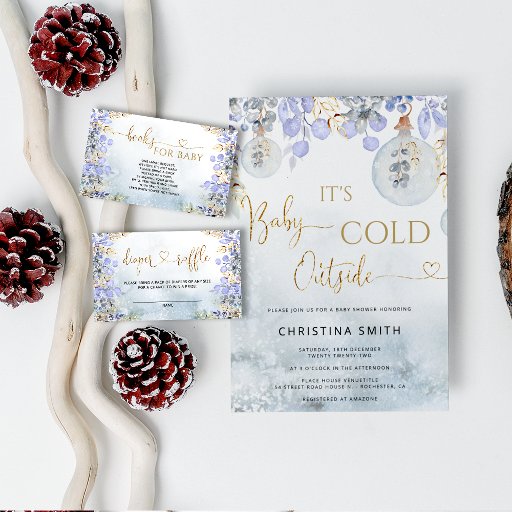 Bébé, il fait froid à l'extérieur de l'invitation du baby shower. Pour une personnalisation plus avancée de ce design, il suffit de cliquer sur le bouton "Customiser" ci-dessus !