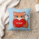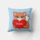 Bébé renard mignon avec cœur et maison personnalisée sur un coussin bleu clair.