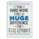 Druk bedankt uit voor het harde werk van uw werknemer met dit unieke typografische ontwerp dat het bericht op witte achtergrond bevat: "Uw harde werk maakt elke dag een enorm verschil voor dit bedrijf." Binnen kan worden aangepast maar heeft dit bericht: Dank u voor uw harde werk, toewijding en voortdurende inzet voor excellentie. WE ZIJN DANKFUL.