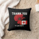 Patriottisch BEDANKT Kussen ontworpen voor CANADESE VETERANEN en degenen in actieve dienst. Het ontwerp shows een grote papaver in het midden, met een kleine vlag van Canada. De tekst is , zodat u kunt personaliseren door de onderste tekst te vervangen door de naam van een geliefde. Het vlaggetje afbeelding is ook aanpasbaar, zodat je het kunt vervangen door een foto in dezelfde vorm. Aan de andere kant is er een betegeld patroon van tekst die zegt: DANK U.