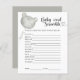 Met deze elegante teddy vieren we de uitnodiging van het baby shower! Overeenkomende objecten beschikbaar. Antwoorden: CRAVINGS, CRYING, PACIFIER, FLES, NACHTLICHT, LULLABY, STROLLER, EPIDURAL, BURP, HOOG VOORZITTER, DIAPERBAG, SWADDLE