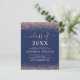 Begrotingsklasse 2023 Roos Gold en Navy Blue Modern en Elegant Sparkly Glitter Girly Graduation Party Invitation. Deze uitnodiging is ideaal voor de Girl's High School of College Graduation Party die op zoek is naar een feest in Blush Pink Rose Gold. Als u extra passende punten nodig hebt, gelieve de ontwerper te contacteren.