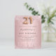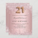 Een moderne, stijlvolle en glamoureuze uitnodiging voor een 21ste verjaardagsfeestje. Een stoffige roos, roze metalen achtergrond met faux glitter drip, verfdruppelaar. De naam wordt geschreven met een modern donkergrijs gekleurd handgeschreven stijlmanuscript met letters. Pas je partijgegevens aan en voeg deze toe. Nummer 21 wordt geschreven met een ballonstijllettertype, script.