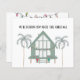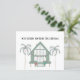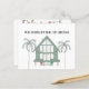 Het voordek van een modern pastelgroen strandhuis is versierd met feestverlichting, banners en cadeaudozen, klaar voor je eerste Kerstmis in een nieuw huis. De palmbomen suggereren dat je nieuwe adres in Florida of een andere zuidelijke staat is. Op de feestelijke groet voor de kaart staat: "We decken deze kerst nieuwe dekken." U kunt deze tekst en al tekst op de rug van de kaart met uw eigen woorden herzien door de van de personaliseer sjabloon dropdown vorm te gebruiken.