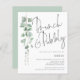 GEEF NOTA Er zijn twee papieren opties om van voor deze grootte (4.5 x 5.6") in de waaier van de Begroting te kiezen. Voor dit product zou ik de halfglansmachine, een 110 gsm-kaartvoorraad, sterk willen aanbevelen, vergelijkbaar in dikte met een briefkaart. De Satin-optie is een veel dunner papier van 80 gr/m². Het gebrek wordt geplaatst aan semi-gloss. NOTA er ÉÉN nodigt per blad uit. Budget Eucalyptus Brunch Bubble Bridal Shower-uitnodiging. Dit moderne botanische ontwerp voor uw Vrijgezellenfeest Invitees heeft elegant manuscript voor Brunch en Bubble bij de bovenkant geplaatst en gemakkelijk personaliseer met uw details onder, met elegante waterverf eucalyptusbladeren die onderaan de linkerkant lopen.