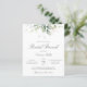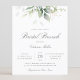 Prachtige, betaalbare bruidbrunch-uitnodiging met waterverf eucalyptus en goudbladeren met kalligrafiescript.