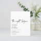 Deze uitnodiging bevat een handgeschreven lettertype en een modern, minimalistisch ontwerp. Verander eenvoudig de kleuren en bewerk *most* formuleringen om aan de behoeften van uw gelegenheid te voldoen. Deze uitnodiging is perfect voor je hedendaagse, industriële of bohemische huwelijksfeest.