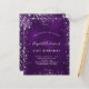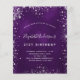 Een moderne, stijlvolle en glamoureuze uitnodiging voor een 21ste (of om het even welke leeftijd) verjaardagsfeestje. Een diepe paarse achtergrond met faux zilveren glitterstof. De paarse kleur is ongelijk. De naam wordt geschreven met een modern handgeschreven stijlmanuscript met letters. Pas je partijgegevens aan en voeg deze toe.