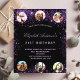 Een meisjesachtige en vrouwelijke 21e (of om het even welke leeftijd) uitnodiging van de verjaardagspartij. Aan de voorzijde: een zwarte achtergrond. Gedemoreerd met donker paars faux glitter stof. Personaliseer en voeg een naam, partijdetails en 6 foto's toe. De naam wordt geschreven met een handgeschreven stijlmanuscript met letters, lichte paarse gekleurde brieven. Achterzijde: zwarte achtergrond en faux glitter.