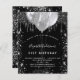 Voor een elegante 21ste (of om het even welke leeftijd) verjaardag. Een stijlvolle zwarte achtergrond. Gedecorreerd met faux zilveren glitter en ballonnen. Geef een persoonlijke naam, leeftijd en partijgegevens op en voeg deze toe. De naam wordt geschreven met een handgeschreven stijlmanuscript
