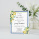 Ze vond haar hoofdpleister van het Vrijgezellenfeest van Lemon... het perfecte zomerbruid Brunch en Bubble. Verfrissende en koele citrusvruchten zijn altijd een creëer, mooie voorstellingen en verfrissingen. Het Collectie van Jenny's Lemons neemt kische waterverf citroenen en koppelt ze met mediterrane blauwe tegels. In dit ontwerp creëer een blauw lijst. Een dun goudlijst tilt het op. Twee citroenbouquets voegen een florale aanraking toe. Ze vond haar Main Squeeze bovenaan. De overige details van het vrijgezellenfeest volgen.