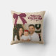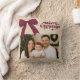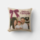 Beige burlap foto bordeauxrode boog Kerstmis Kussen