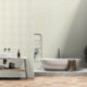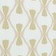 Seamless repeating pattern with stylized beige hourglass shapes and soft wave-like lines forming a vertical rhythm on a white background in a retro geometric design
