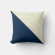 Diagonaal werpkussen in warm beige en diep marineblauw. Perfect voor elegante, moderne en kalmerende interieur