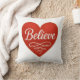 Beautiful, minimalist throw pillow with heart design that reads, "Believe" in white script. Great gift idea to decorate your favorite chair for holidays or throughout the year.