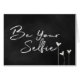 inspirerend tekst "wees je selfie" op getextureerd zwart karton met hartbloemen