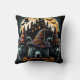 Drie grillige beren in kleurrijke heksenkastelen staan voor een spookkasteel, omringd door gloeiende pompoenen, terwijl vleermuizen fladderen in de maanverlichte pet.