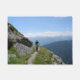 Solitaire fietser die het terrein Portjoch aanpakken geen die twijfel door het overweldigende landschap wordt aangespoord. Grote foto om een inspirerend citaat of een bericht van aanmoediging toe te voegen om een doel te vervullen.