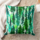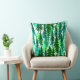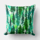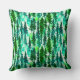 Kussen in een waterverf van dennenbomen in een bergbos, in tinten van middelmatig tot donkerdennengroen op een zacht, waterverf achtergrond