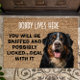 Custom Berner Mountain Dog deurmat met een grappige quote. "Je wordt gesnoven en eventueel gelikt...Ga ermee om." Het heeft een antisliprubber dat niet zal barsten of knikken, bestand is tegen vervagen, schimmel en meeldauw en gemakkelijk kan worden gereinigd met een slang. Wees creatief - klik op AANPASSEN om tekst toe te voegen / te verwijderen / te wijzigen, het afbeelding te wijzigen, de grootte van het afbeelding te wijzigen, kleuren, achtergrond of iets anders dat de aanpassingstool zal toestaan!