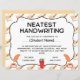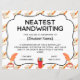 Vier de uitzonderlijke penmanship van uw student met de "Eind van het Jaar Netste Handschrift Student Recognition Award." Dit prachtig ontworpen certificaat is perfect voor het erkennen van hard werk en toewijding bij het bereiken van het netste handschrift. Ideaal voor zowel leraren als ouders, het is een geweldige manier om jonge geleerden te eren en te motiveren.