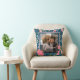 Moderne schattige bloemige aangepaste foto gepersonaliseerde Moederdag foto gooi kussen met een pastel en marine kleurrijk botanisch patroon en een trendy "beste moeder ooit" roze typografie script overlay. +++++++ Perfect aandenken geschenk voor moeder of oma.