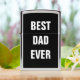 Gedrukt met solide zwarte achtergrond en tekst sjabloon voor "Beste vader ooit", die u kunt aanpassen om persoonlijke cadeaus te maken, feestelijke gunsten enz. voor Vaderdag, verjaardagen, bruiloften, jubileum, enz. U kunt ook de achtergrondkleur wijzigen zoals u wilt.