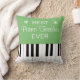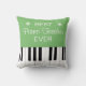 Grand piano toetsen Kerst Sierkussen voor een pianoleraar, pianist, pianist, enz. Zwart-witte pianotoetsen en groene strepen, met elegante scripttypografie "Beste pianoleraar ooit" en de naam. Elegant gepersonaliseerd winter Vakantie cadeau idee voor hem of haar.