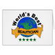 Een wereldbol- en lintontwerp ter ere van 's werelds beste schoonheidsspecialist