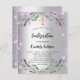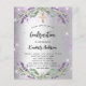 Een moderne, stijlvolle en glamoureuze uitnodiging voor een bevestiging, een faux zilverachtige achtergrond met een violet faux glitter, sparkles, lavender florals, bloemen en eucalyptusgroen. De naam wordt geschreven met een modern handgeschreven stijlmanuscript met letters. Pas uw gegevens aan en voeg deze toe.