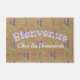 Deze bijtende doormat kenmerkt een floreel patroon tegen de achtergrond van de burlap. Het komt met het gebogen tekstontwerp " Bienvenue " = Frans Welkom. Gemakkelijk om het nu met de naam van uw familie aan te passen.