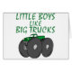Un dessin d'un gros camion monstre vert et le dicton, Little Boys Like Big Trucks. Les garçons qui aiment les gros camions adoreront porter des t-shirts cool et plus encore avec ce gros camion vert.