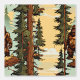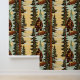 Sasquatch van Bigfoot in de pijnbomen in het bos herhaalde patroon stok en schil wandpapier.