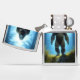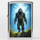 Sasquatch of Bigfoot in de bossen omgeven door hoge dennenbomen Zippo Lighter.