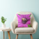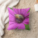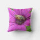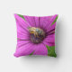 Een gooiende kussen met een kleine bij op een heldere paarse bloem.