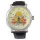 Bijenhouderij Kijk uit. Deze stijlvolle bijenteelt heeft een traditioneel bijenteeltthema. Dit horlogeontwerp heeft een traditioneel mandje bijenkorf en een houten bord gezegde honing, en het ronddraaien rond bijenkorf onder de weide van papavers en madeliefje bloemen zijn een aantal drukke bijen die honingbijen en mooie blauwe vlinders opblazen. Om het thema van de bijenteelt te voltooien, heeft dit horloge een honingraatachtergrond en 12 druppelende gouden honingcijfers. Het bijenbijenhorloge van deze imker maakt het perfecte cadeau voor imkers en iedereen die van honingbijen houdt en van honing houdt. Een man moet een horloge hebben voor elke hardwerkende imker. (Ook de muurklok van de imker is verkrijgbaar in de winkel).