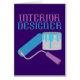 Deze moderne en stijlvolle interieurontwerperafbeelding biedt een verf met blauwe verfdruppels uit het deksel en een grote blauwe verfrol! Dit leuke kunstwerk is het perfecte geschenk om te kopen voor de interieurontwerper, schilder of decorator in je leven!