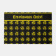 Zwarte deurmat met een herhalend biohazard-symboolpatroon en aanpasbare tekstbalk in felgeel.