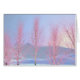 Peinture numérique de bouleaux enneigés ; la neige teintée rose par le coucher du soleil. Ici, dans le nord, il est courant de voir des arbres recouverts de neige teintés soit rose soit orange par le soleil accroché à l'horizon.