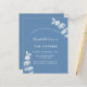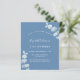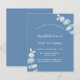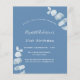 Een stoffige blauwe achtergrond, versierd met eucalyptusstengels, sprigs. Pas een naam en partijdetails aan en voeg deze toe.