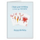 Een verjaardagskaart voor iemand die graag kaarten speelt. Een koninklijke bloedige harten en de woorden "Ik hoop dat je verjaardag op een hoop komt". Iemand zal van deze leuke verjaardagskaart houden.
