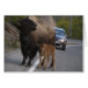 Bison adulte avec son calvaire bloquant la circulation dans le parc national Yellowstone